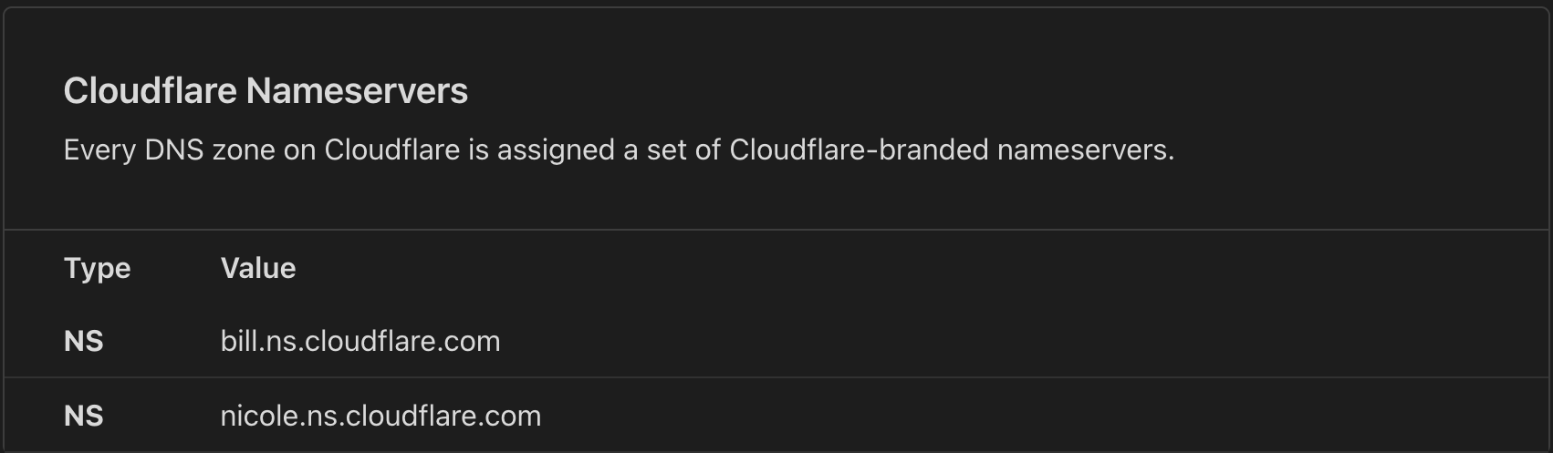 Once the nameservers have been changed sucessfully, you should be able to view them in your cloudflare dashboard, and the domain should show up like so:
