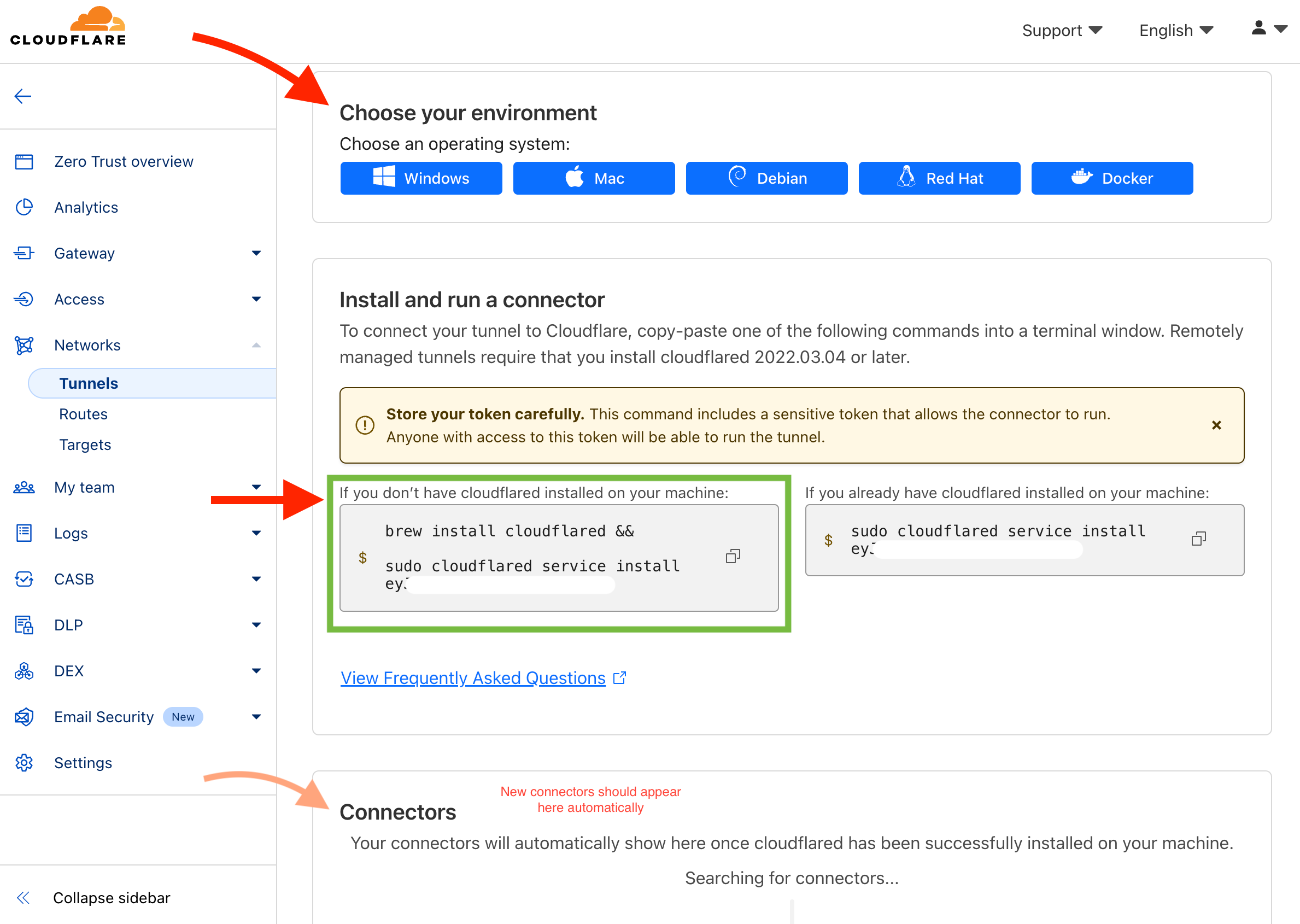 The code that is inside the green block should only be run on the device hosting the nginx server. What it does is install a cloudflare client and setup the tunnel. It is a unique one-time code that contains a key to setup the tunnel, so make sure the connection is established before trying to change / reload the page.
